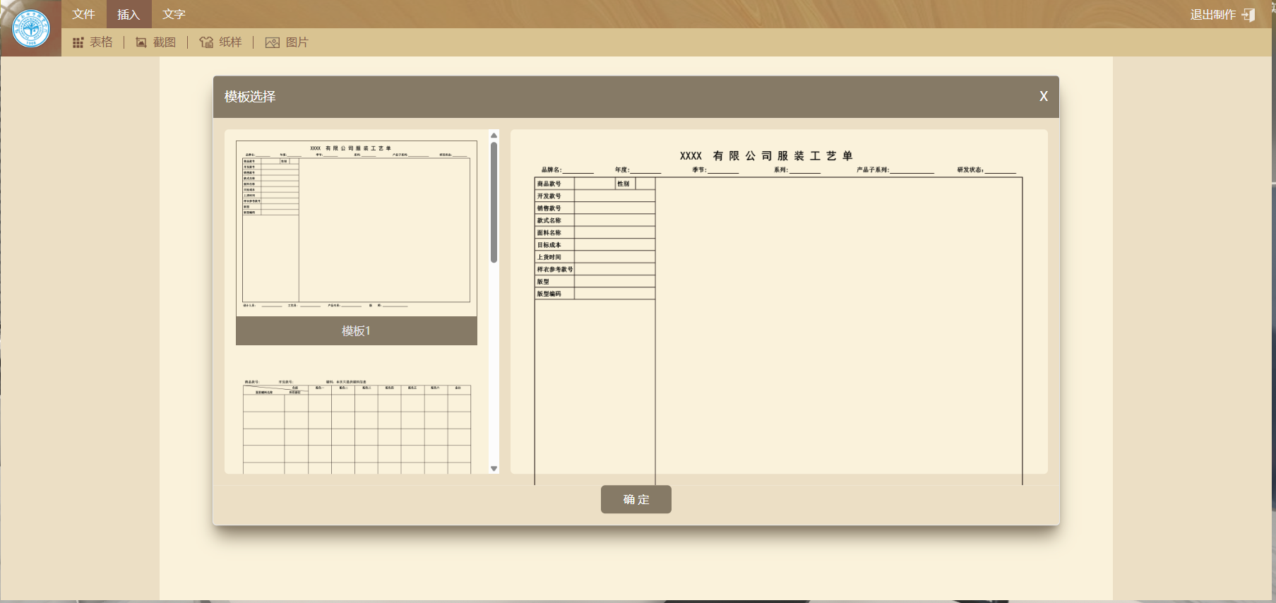 (1)在菜单栏中“插入”下拉选择表格:提供能够轻松绘制工艺单表格的工具。