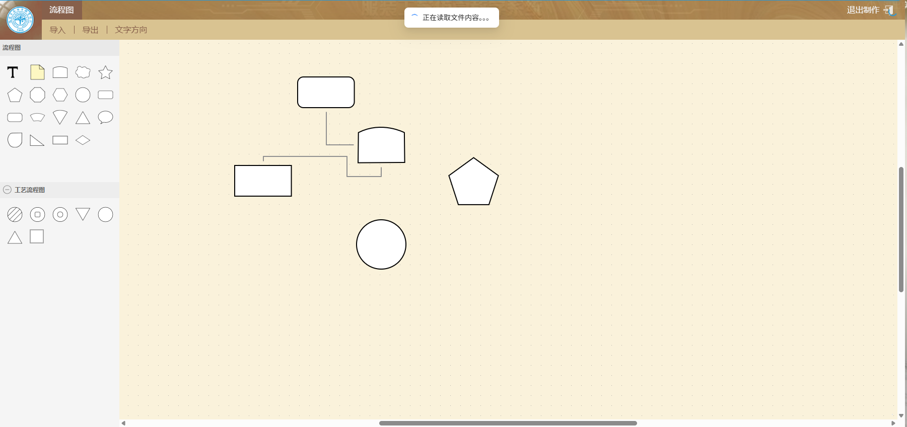 (7)流程图编制:可以通过新建白板构建新图纸,也可以通过模版新建,直接使用模版,也可通过Bdx文件导入原保存文件,用工具条的工具完成流程图。